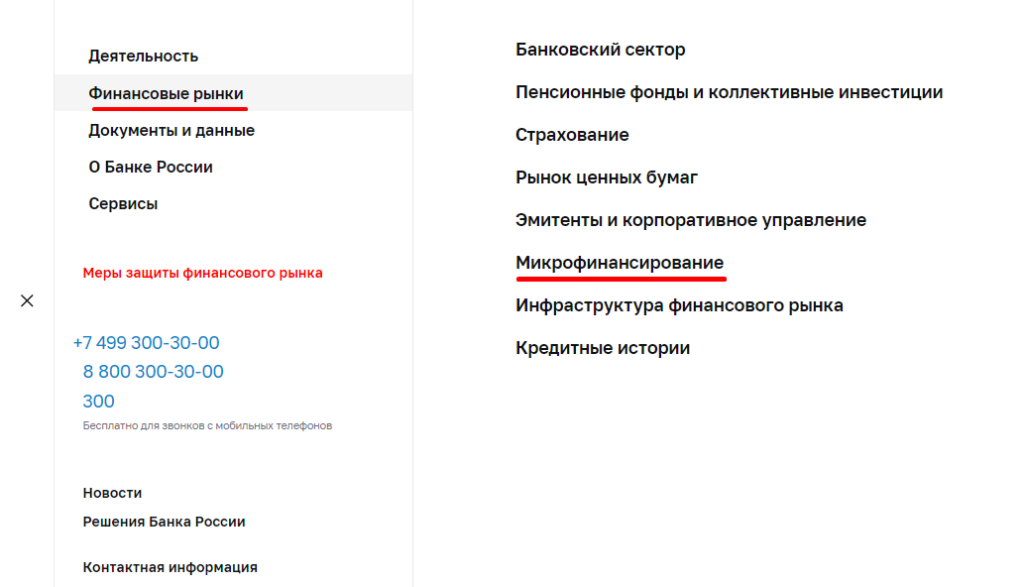Шаг 2. В новом всплывающем списке кликните по строчке «Микрофинансирование»