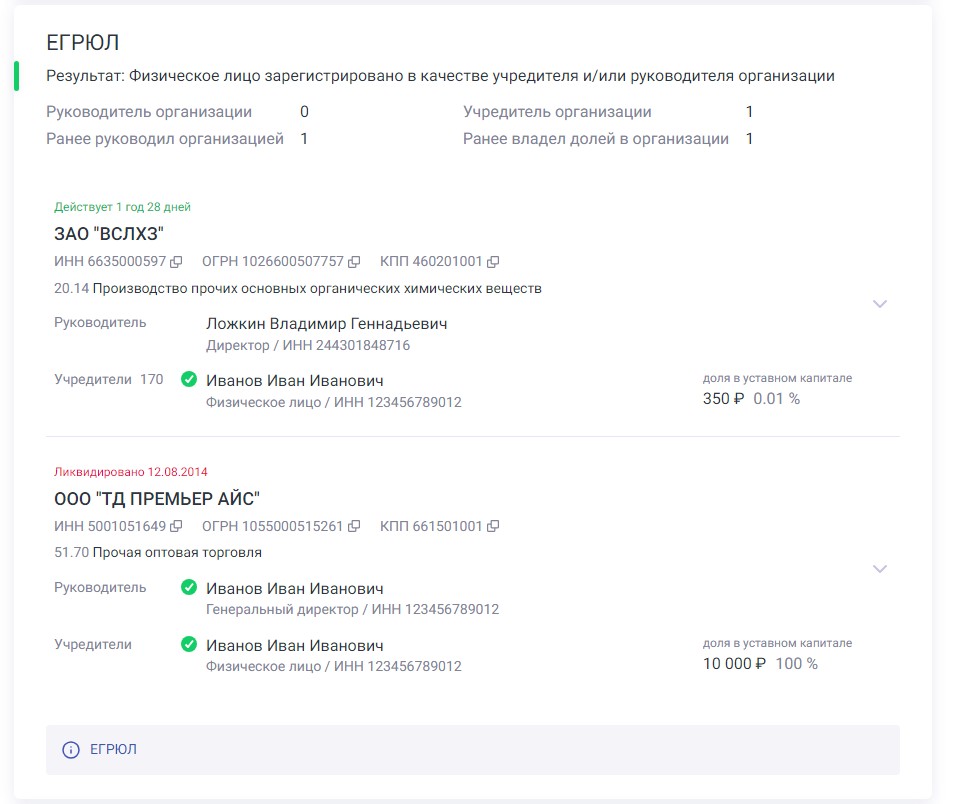 - если физлицу присвоен ИНН, то его номер появится в строке результата.