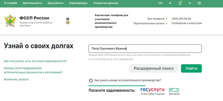 1. Зайдите на официальный сайт ФССП для осуществления проверки.