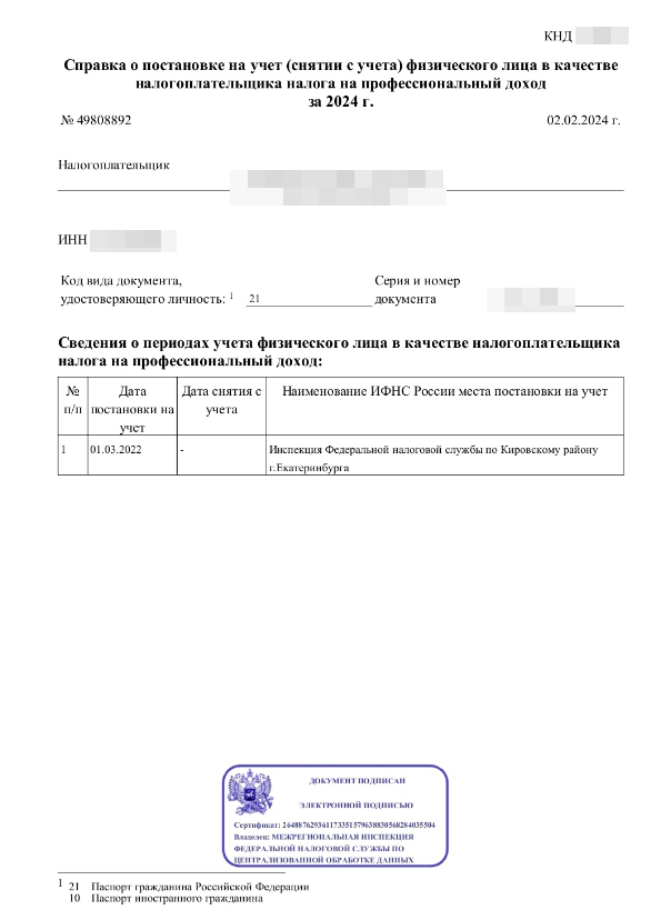 Как выглядит справка, подтверждающая статус самозанятого: